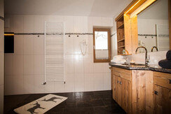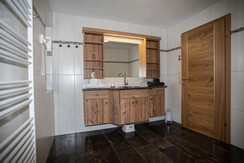Badezimmer (Schminkspiegel, Haarfön, Hand- und Duschtücher, Badevorleger)