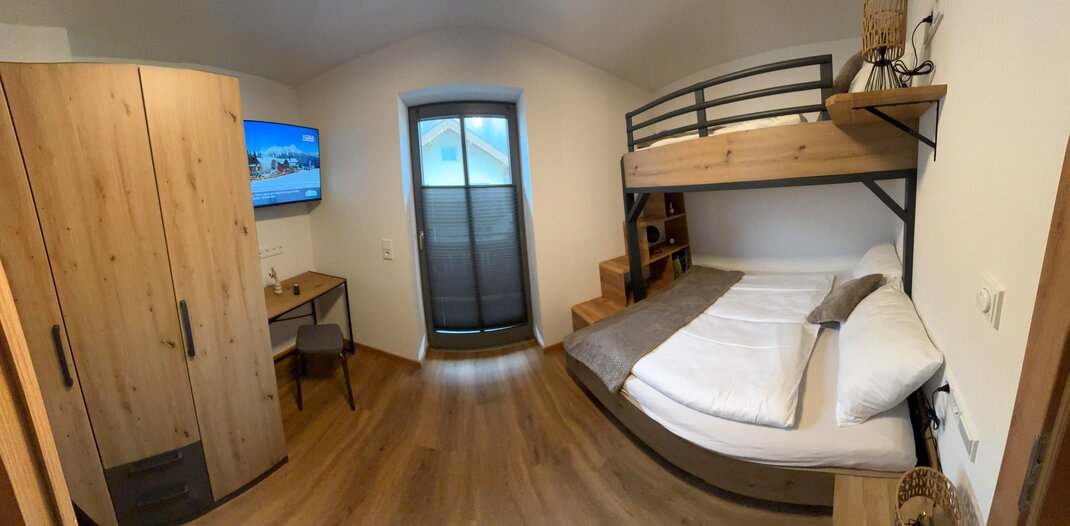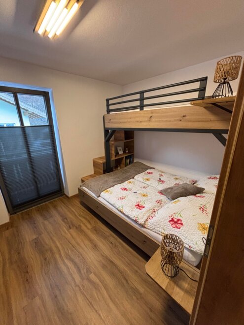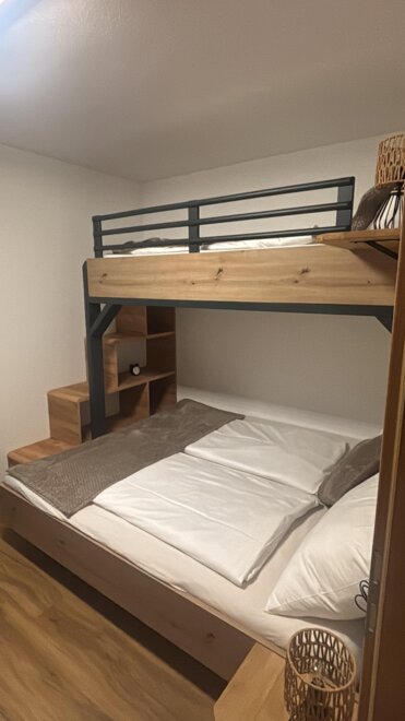 Ein Schlafzimmer verfügt über ein Doppelbett und einer Ausziehcouch, im zweiten Schlafzimmer sorgt ein Etagenbett, wo bis zu 3 Personen Platz finden, für erholsame Nächte.Ausstattung Zimmer/Appartement