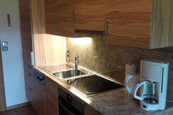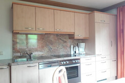 Küchenzeile, Gartenmöbel, Kaffee-Maschine, Geschirrspülbecken, Dunstabzug, Zimmer/Appartement größer als (m²): 1, Küche, Elektroherd, Kühlschrank, Tisch- und Küchenwäsche, Bettwäsche vorhanden, Geschirr vorhanden, Geschirrspülmaschine, Toilettenartikel, Wohn-/Schlafräume getrennt, Fernseher, Balkon, Trockner, Allergikerbettwäsche