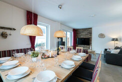 Das Haus Ferdinand ist ein neues Ferienhaus in Leogang. Es liegt 4 Minuten von der Steinbergbahn, 7 Minuten von der Asitzbahn und 200 Meter von der Skibus-Haltestelle entfernt. Das Haus ist sehr luxuriös und voll ausgestattet. Es bietet Platz für 14 Personen. Das Haus kann auch in zwei separate Teile gemietet werden: ein Apartment für acht Personen und ein Apartment für sechs Personen. Das Haus verfügt über vier Schlafzimmer, zwei Wohnzimmer mit luxuriösen Schlafcouches, drei Badezimmer und eine Sauna, die allen Gästen zur Verfügung steht. Jeden Morgen ist ein Brötchenservice möglich.
