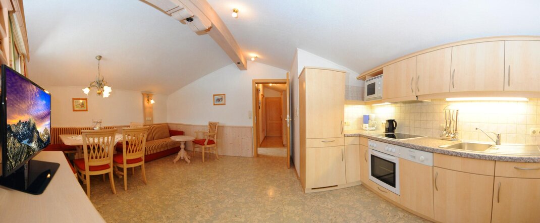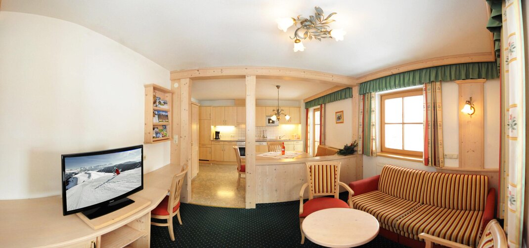 Dieses Komfort-Appartement für 2-4 Personen besteht aus einem Doppelzimmer und einer Wohnküche. Sie finden außerdem in der Wohnküche eine Komfortausziehcouch mit 180 cm Breite. Sofern Verfügbar können Sie auch das Zimmer 3 dazubuchen und 3-7 Personen unterbringen. Das Zimmer 3 verfügt über eine weitere Komfortschlafcouch für eine Person. Die Ausziehcouchen sind für maximalen Komfort noch mit einer extra Matratze ausgestattet. Sowohl das Appartement Asitz und das Zimmer 3 verfügen über TV und W-LAN.