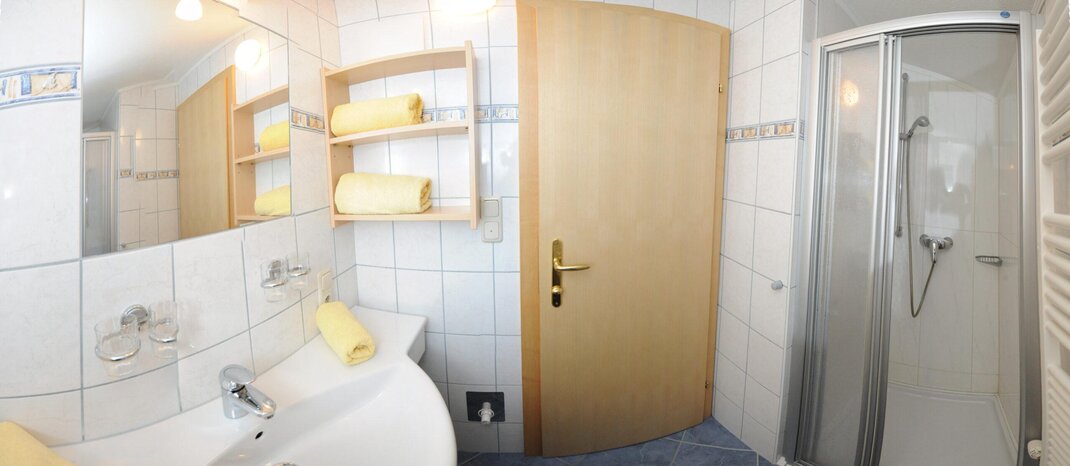 25 m² großes Doppelzimmer mit Dusche und WC .