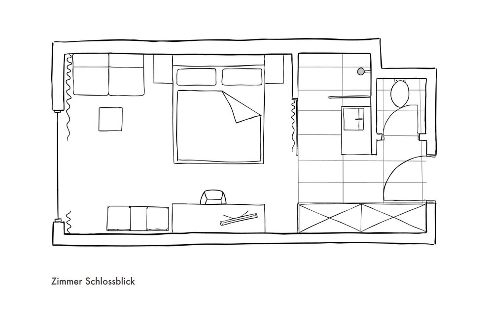 | 22 m2 | Diese preisgünstigste Zimmerkategorie mit einfacher Ausstattung im Haus am Schloss ist mit hellem Kirschholz und erfrischenden grünen Farben gestaltet. Ein Balkon oder ein französischer Balkon rundet das Gesamtbild dieses Doppelzimmers ab.