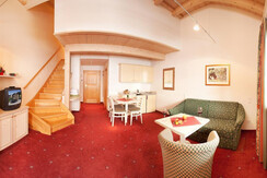 "Familiensuite Katharina" ca. 52 m2, Wohnraum mit darübererliegendem Schlafraum, DU/Bad, WC, Föhn, Balkon, Telefon, Kabel TV, Zimmersafe,Kühlschrank, Kochnische usw.