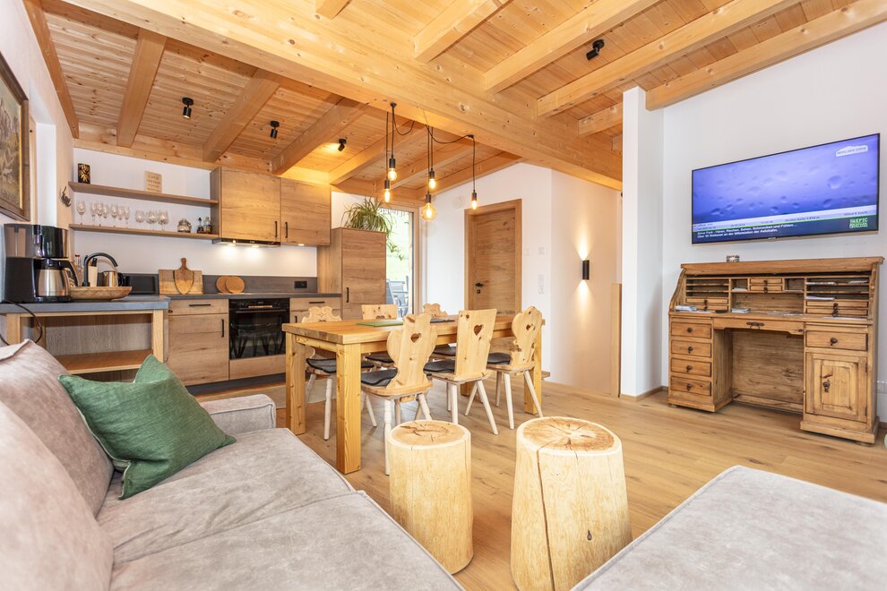 Es erwarten dich zwei Natur Lofts (ZirbenWald 83 m2, FichtenWald 85 m2) mit gemütlichem Ambiente auf 2 Etagen mit viel natürlichem Holz und ein Natur Apartment EschenWald mit 103 m2 mit Kachelofen und Landhausküche, alles im Erdgeschoß mit großzügigem Garten.