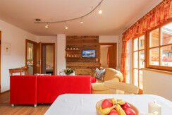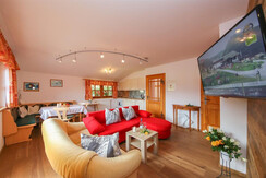 Our house is in a sunny quiet location directly at the slope (100 m) and cross-country ski run (30m). Our chalet has 2 balconies, a terrace, 70 m² living room with TV, 2 bedrooms one of which with TV, 2 WC, washing machine and free garage. In the summer we have wonderful hiking and cycling trails, golf courses, right at the bike park. The Löwen Alpin Card is free of charge.