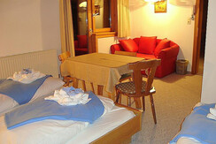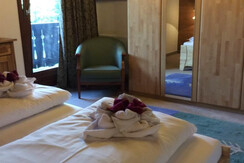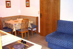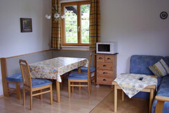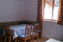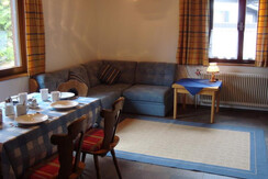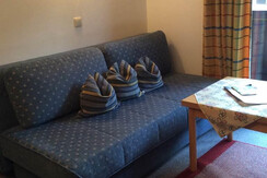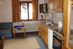 Apartment Fahnenkopfl is located on the first floor and has 1 double bedroom with WC and wash basin. There is a living room/kitchen with TV, plus a small Kitchen area with fridge, combi oven 2 ring electric stove, toaster, kettle and coffee machine. Double full size sofa bed. A bathroom with bath/shower over, WC and wash basin. Balcony with North facing views.
