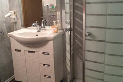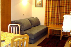Studio apartment. Living room/kitchen with oven/4 ring stove/fridge/microwave/coffee machine/TV. Double sofa bed. A seperate small bedroom with bunk beds. Bathroom with shower and 2 wash basins. Seperate WC. Ideal budget priced apartment for 1 - 3 persons.