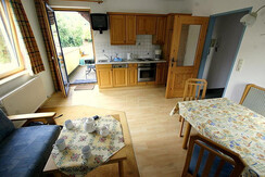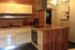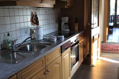 Apartment Sonnberg is on the second floor. Double bedroom for 2 persons, a small room with a reduced size bed suitable only for a child or teenager. In the large open plan kitchen/ lounge is a TV , seating including a double sofa bed and a dining area. The kitchen is fitted to a very high standard, with ceramic hob, oven, dishwasher ,fridge,microwave,coffee machine. South facing balcony with outdoor furniture.