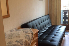 Drei-Personen-Studio Wohnung. Dopple + Einzellbett. Kuche ecke mit 4 E-Herd,Offen, Mikrowelle,Kuhlschrank, Kaffee Machine. Essecke. Badzimmer.Balkon.