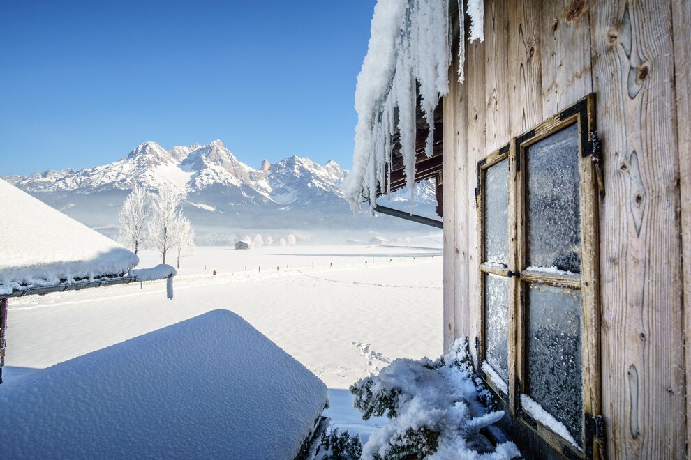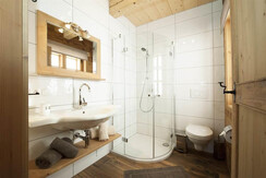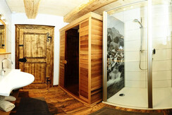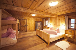 There are new apartments Hoferbichlguts having a size of about 82 - 85 m². Our apartments are composed of a nice and cozy living room of solid wood furniture combined with lovingly restored rustic furniture made. The furniture is of fragrant pine wood, the beds are brand-free in order to ensure a restful sleep. There is an infrared cabin with shower, toilet and a towel dryer. The chalet has a fully equipped open kitchen. On the ground floor is the bathroom, a toilet and a washing machine. Upstairs are "Flexinno" - double beds. Outside there is a barbecue, a bench seat and sun loungers. In addition, an external Saunahütter'l with stunning mountain views.