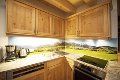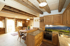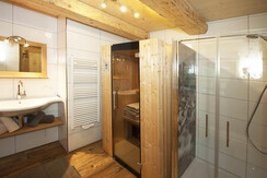 Our appartement offers panoramic views balconies with extraordinary views of some three thousand towards Kitzsteinhorn, Steinernes Meer and the Hochkönig Region. The panoramic view is a beautiful and cozy living room made of solid wood furniture combined with lovingly restored rustic furniture. The apparetment consists of 3 double bedrooms and 2 bathrooms with shower, toilet and heated towel rail. The furniture is made of fragrant pine, the beds are brand-free and ensure a restful sleep. There is an infrared cabin with shower, toilet u. Towel dryer. There is also free Wi-Fi in the Appartemets and flat screen TV's.