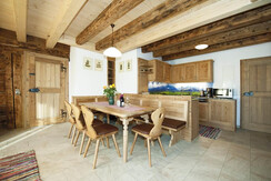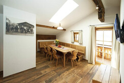 Our apartment have a size of 82 m² and consists of a beautiful and cozy living room made of solid wood furniture combined with lovingly restored rustic furniture. A balcony is available with a beautiful view of the Steinernes Meer and the Hochkönig region. In Apartment Hochkönig 2 doubles and There are 2 bathrooms. The furniture is made of fragrant pine, the beds are brand free and to ensure a restful sleep. The special feature of this room is the lovingly restored wooden paneling from the 17th century. There is also free WLAN in the apartments and a flat screen TV's.This apartment can be combined with the Appartement Kitzsteinhorn through a connecting door (max. 12 person).