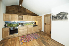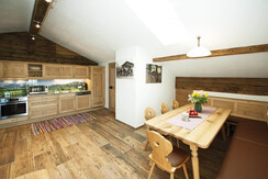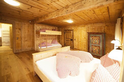 There are new apartments of Hoferbichlguts having a size of about 82 - 85 m². Our apartment Kitzsteinhorn is a beautiful and cozy living room made of solid wood furniture combined with lovingly restored rustic furniture. In the Appartement Kitzsteinhorn there are 2 double rooms. The furniture is made of fragrant pine, the beds are brand free and to ensure a restful sleep. Of course you can use free WLAN. There is an infrared cabin with shower, toilet u. Towel dryer.