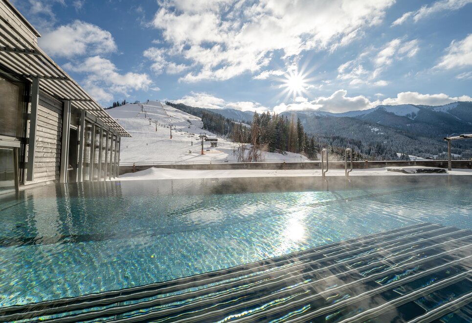 1,050 m above sea level, above the rooftops of Leogang, we discover the first wood-construction hotel in Salzburg, the Forsthofalm. With its unique location in a natural setting right on the ski slopes, it is an ideal base, summer and winter, for all your sporting activities.