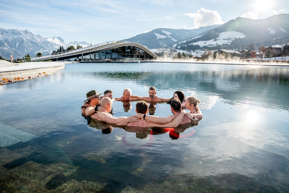 The family-friendly REFUGIUM attracts guests with saunas, steam baths, an indoor and outdoor pool and treatment rooms for beauty and body treatments. New since April 2023 is the iconic spa ATMOSPHERE by Krallerhof - Adults Only - with a 5,500 square meter natural bathing lake, a whirlpool embedded in it and the 50 meter infinity pool, as well as numerous saunas, a blue grotto as an energetic center and a yoga room. The relaxation room with a view of the mountains is especially suitable for allergy sufferers and the café by the lake with its retractable façade invites you to relax. ATMOSPHERE was designed by star architect Hadi Teherani.