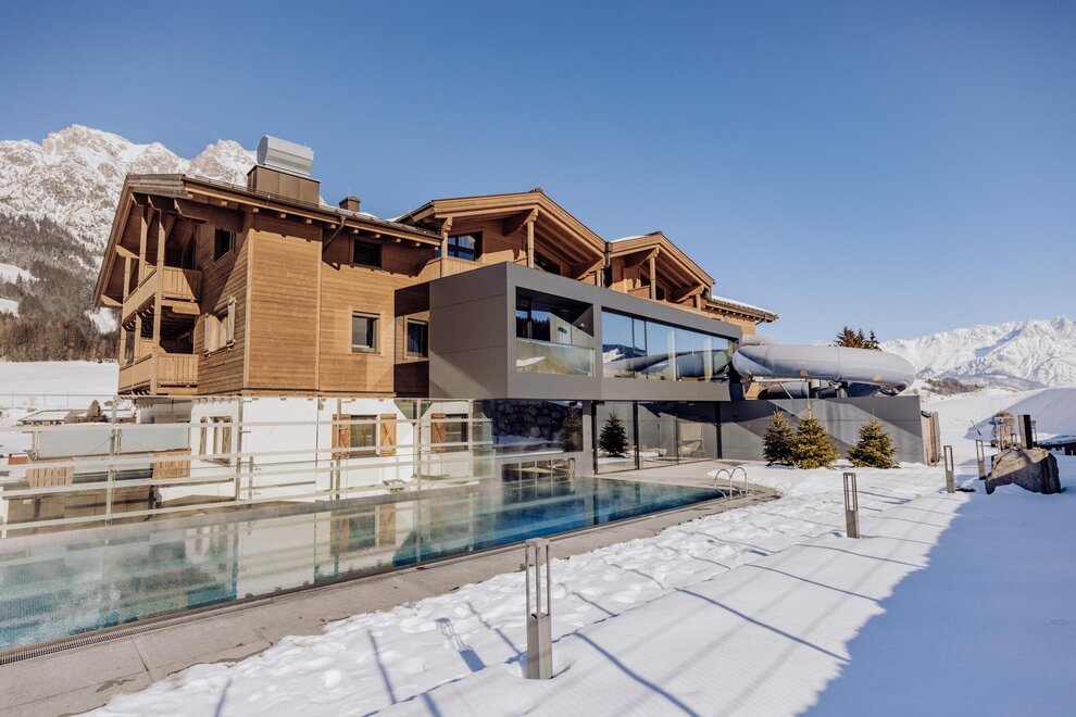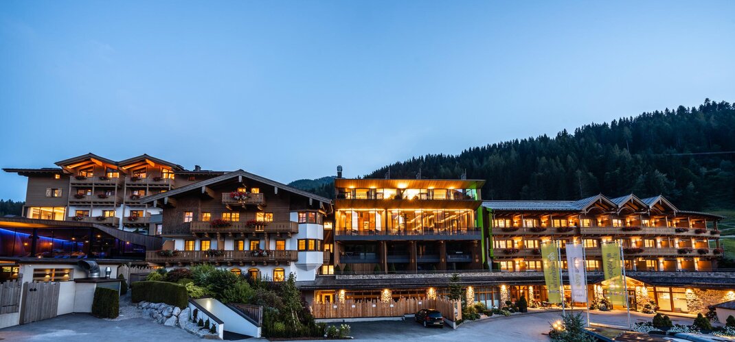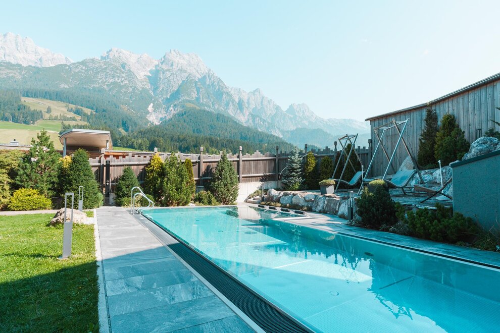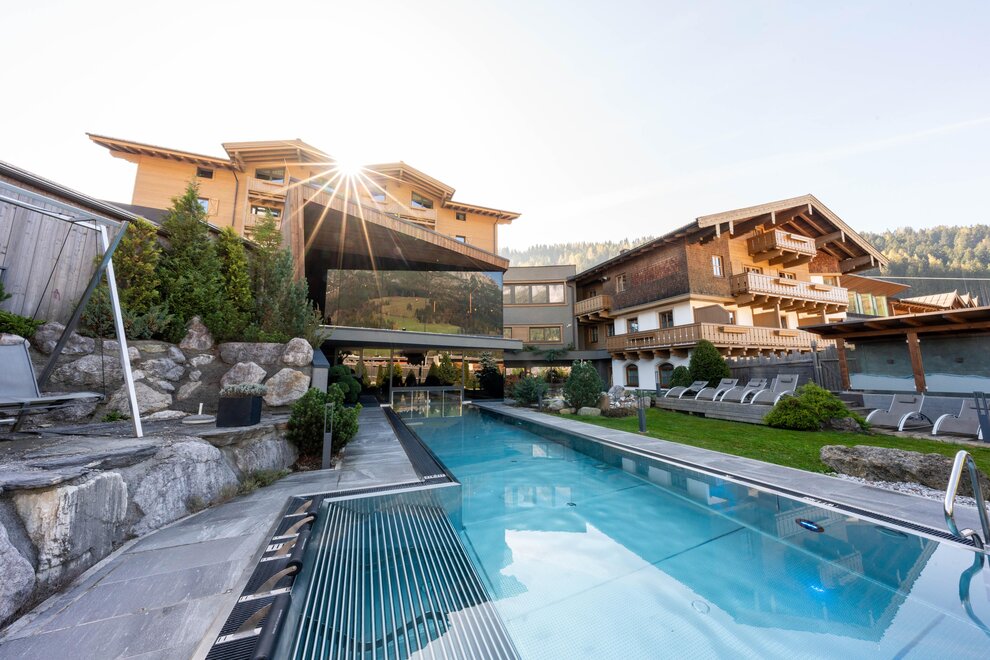In a sensational location overlooking the Leoganger Steinberge, the Riederalm offers everything the pampered holiday-heart desires from the first thermal pool in the region, Mountain SPA exclusively for adults, Extra Family SPA, two pools of 20m to ingenious gourmet highlights.