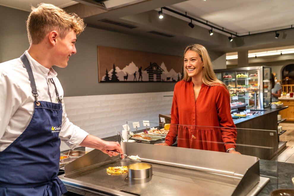 Slightly different from the others and at the highest level, the experimental and young kitchen team led by Andreas Herbst prepares culinary flights in the gourmet restaurant, taking into account the sustainable and regional origin of the products.