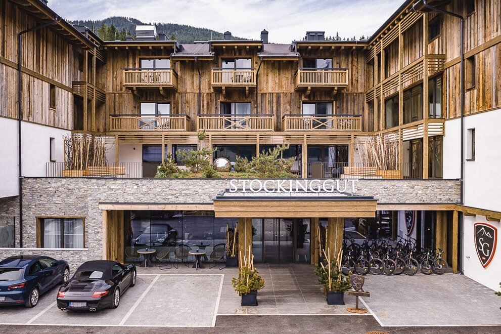 Luxurious alpine design hotel in a unique ski-in ski-out location with breathtaking views over the ski slopes and the imposing Leogang mountains. Relax in the in-house wellness area with sauna, sanarium and fitness room or enjoy culinary delights in the Stockinggut restaurant.