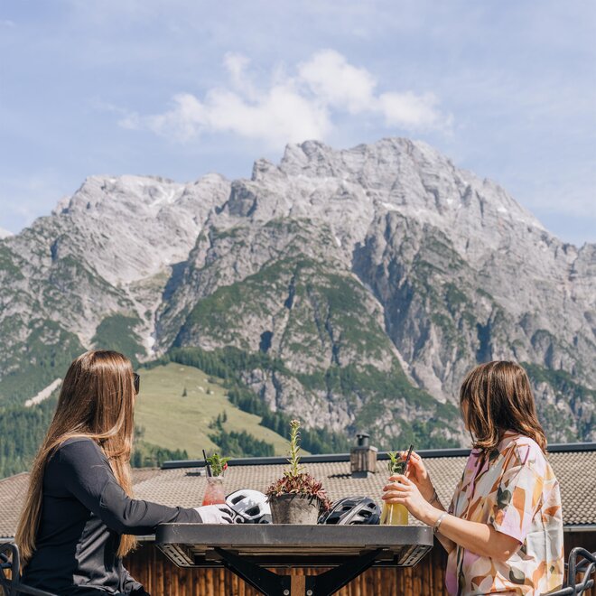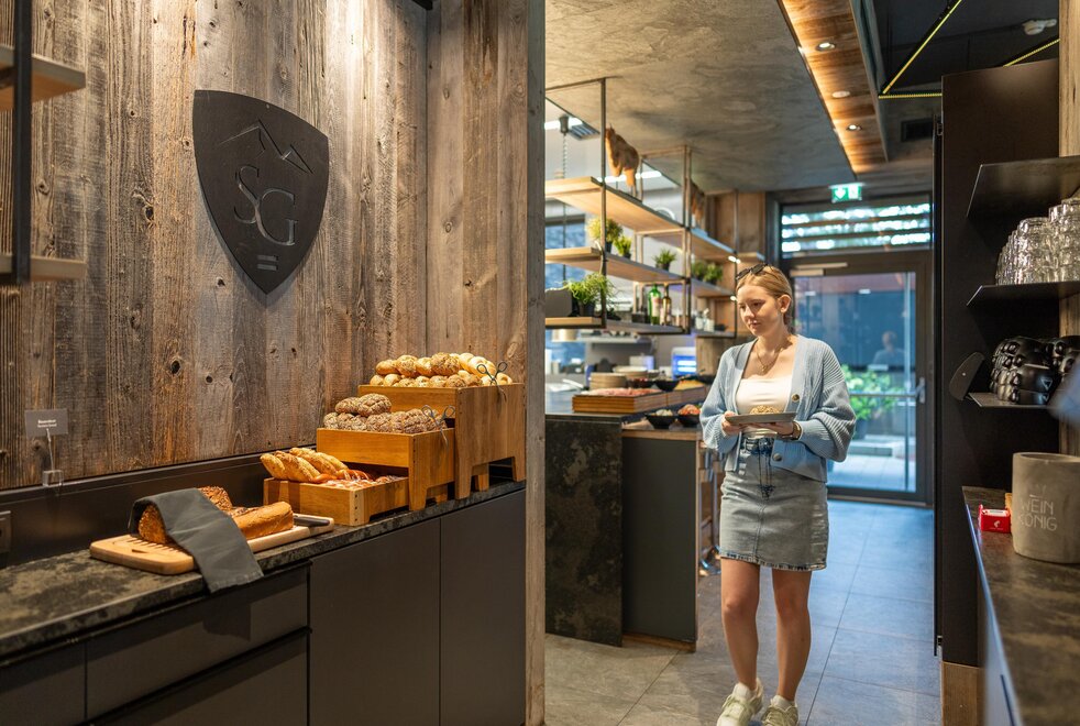 The stylishly furnished suite has a separate bedroom with double bed and a beautiful living area. A bathroom with shower and toilet, a modern, fully equipped kitchen with a cosy dining area and a seating area await you. On the balcony or terrace you can enjoy the mountain air.
