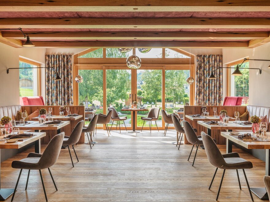 - Fine-Dining Restaurant silva – Inspired by the forest, this restaurant celebrates nature on the plate, in the glass, and in its ambiance. Traditional techniques such as fermentation and smoking are combined with modern culinary artistry. Guests can choose between the "forest" menu (classic) or the "meadow" menu (vegetarian & vegan).