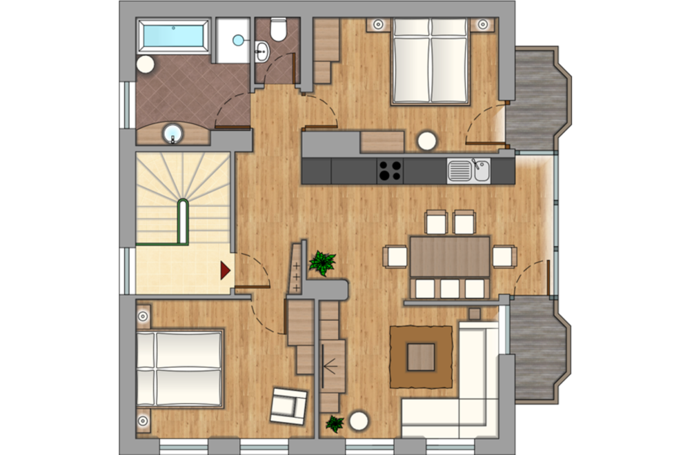 - two small balconies