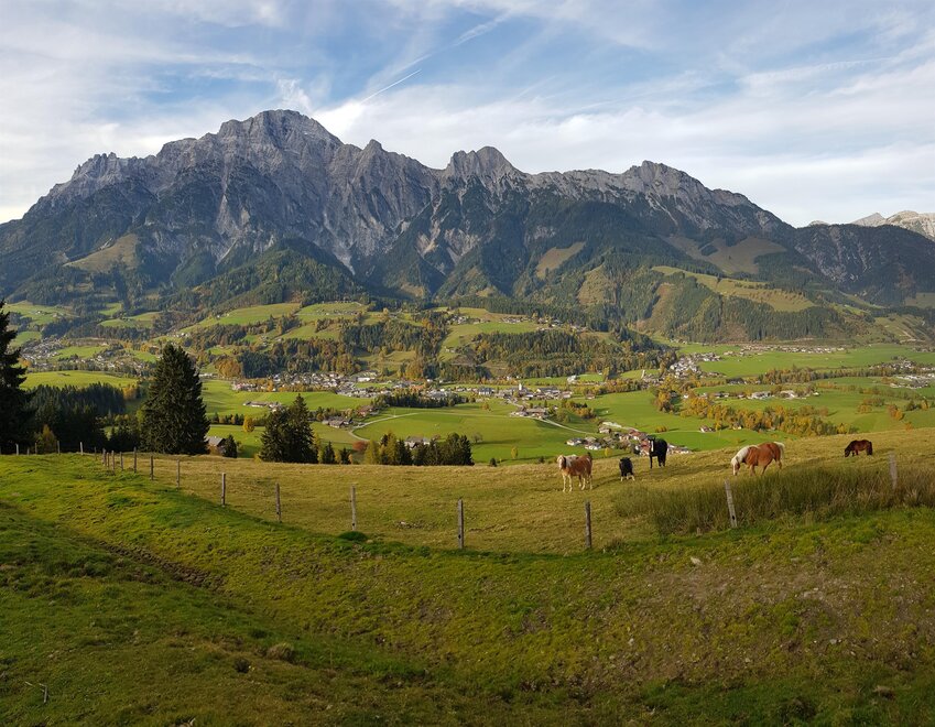 A seperate Guesthouse near an ethnic farm-house on a sunny plateau above the village. It has a fantastic view, lot´s of peace and quiet and is directly next to a ski lift.