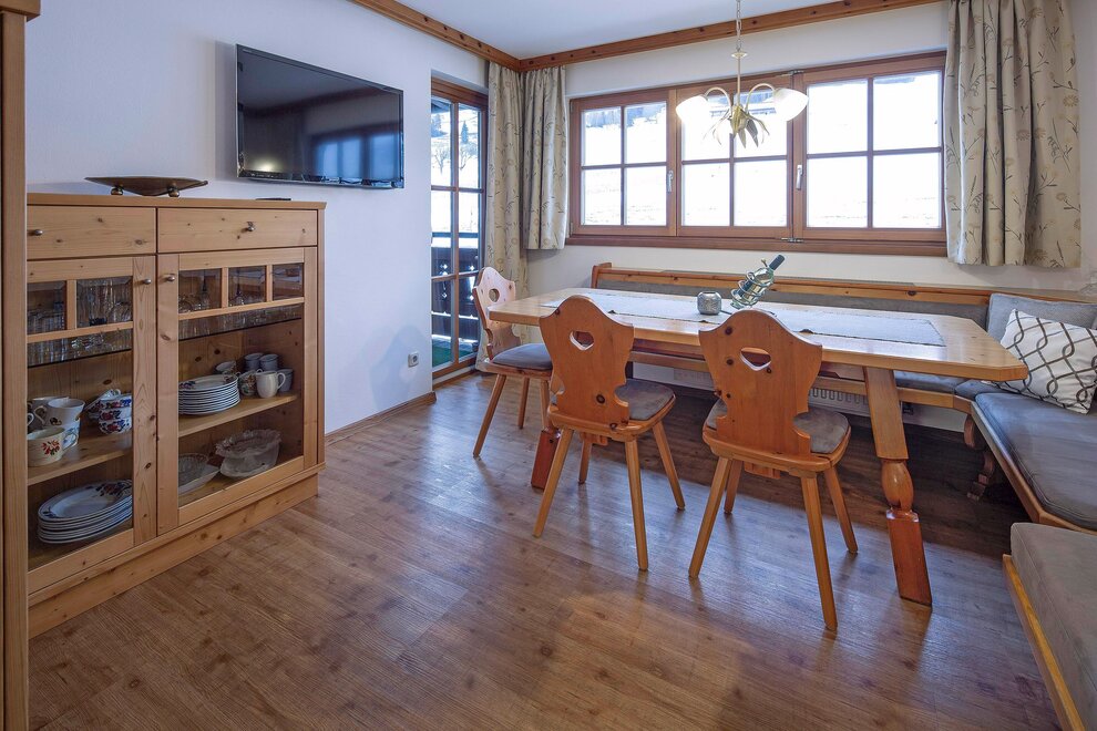 Im Obergeschoss, ostseitig, gemütliches Appartement, großer Balkon mit Freisitz, wunderbare Aussicht zu den umliegenden Steinbergen, abgeschlossene, gemütliche Wohnküche, 2 Dreibettzimmer, 2 Badezimmer, Vorraum, Kabel-TV, W-Lan, Geschirrspüler