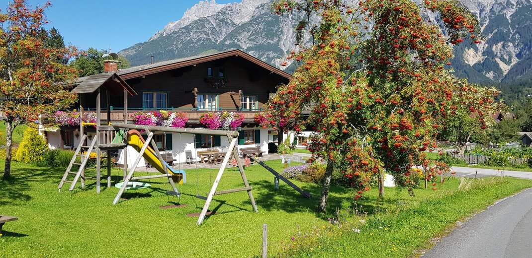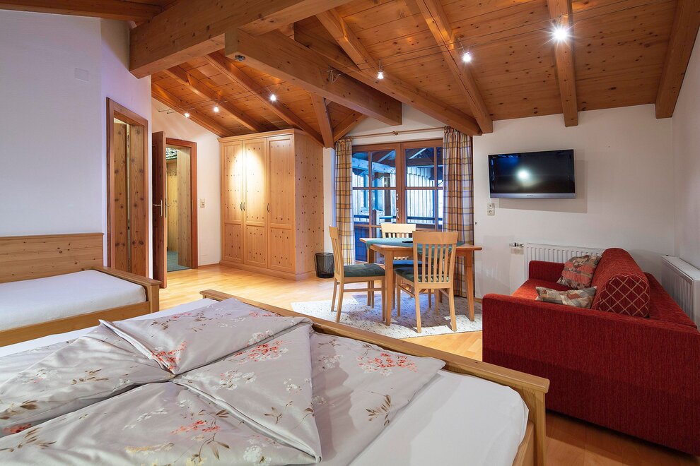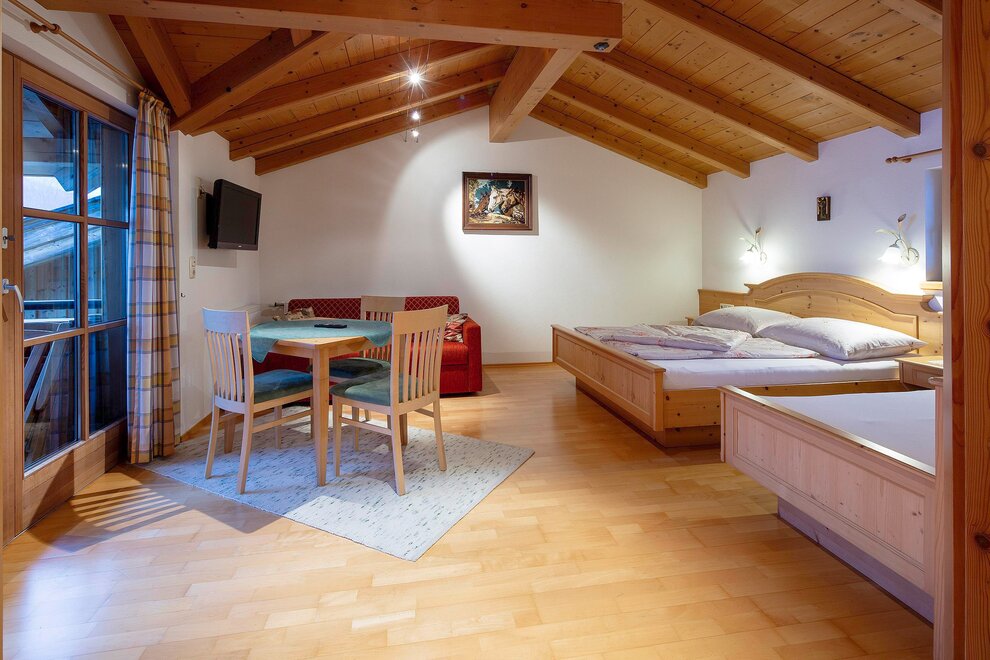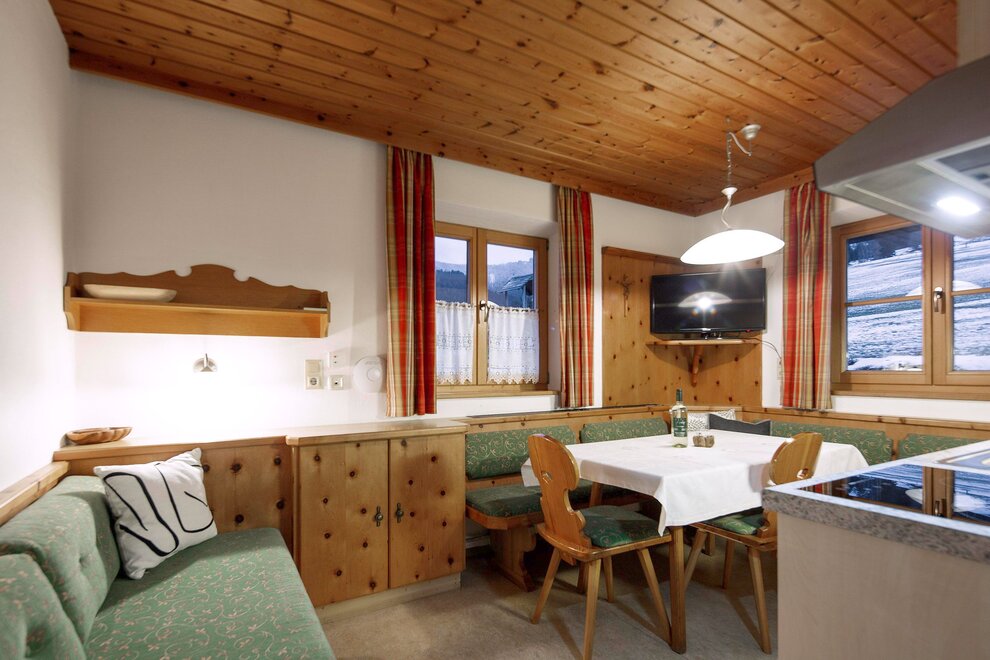 A seperate Guesthouse near an ethnic farm-house on a sunny plateau above the village. It has a fantastic view, lot´s of peace and quiet and is directly next to a ski lift.