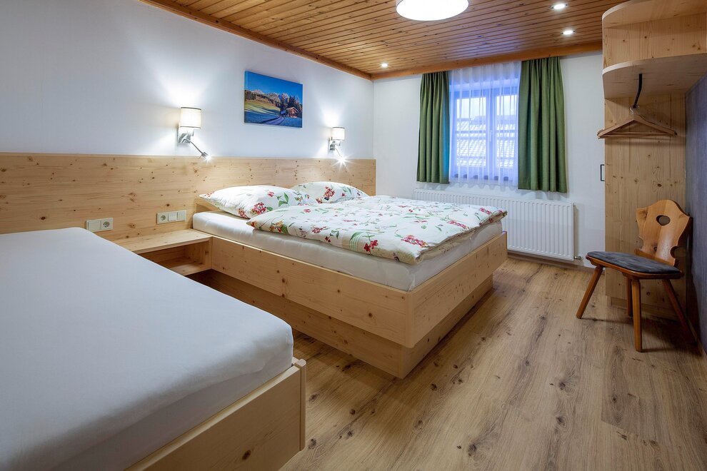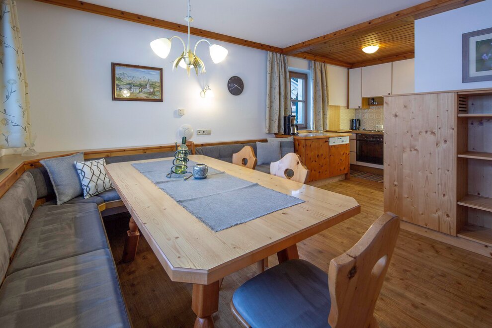 We offer four very nice holiday flats from 40 to 80 m2 for two to eight people here at Untermadreit in Leogang! Each apartment consists of an entrance hall, a large kitchen-cum-living room with electric cooker and dishwasher, one to three bedrooms with shower and WC. We also offer digital flat-screen TV, WiFi, use of the washing machine, table tennis, children's bicycles. Bread roll service and tasty organic products (honey, eggs, milk, schnapps) are also part of our special offer.