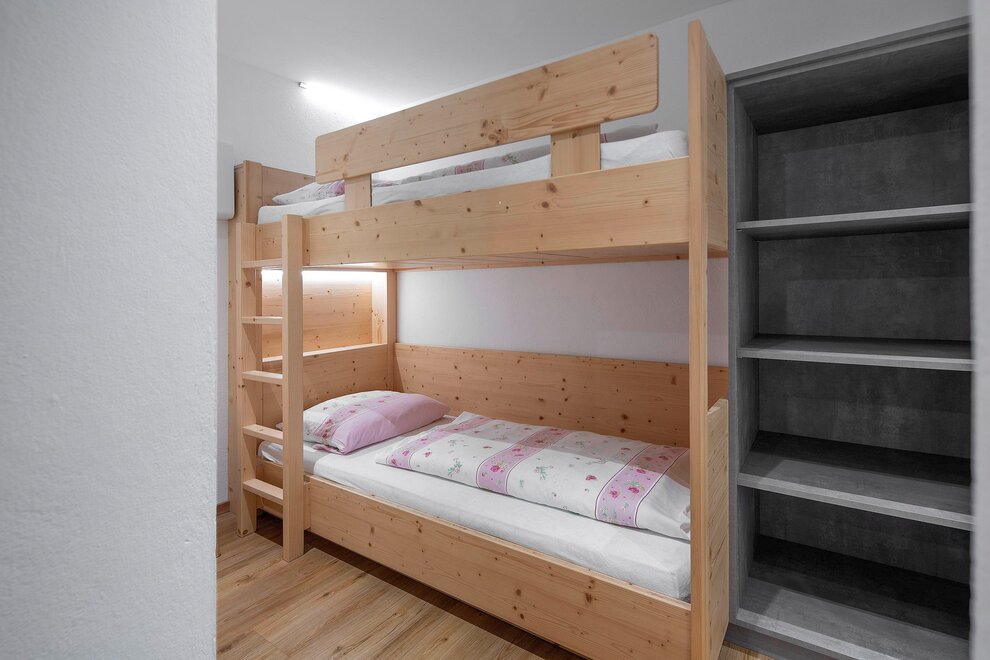 Im Parterre südlich liegendes Appartement mit abgeschlossenem Vorraum, gemütlicher Wohnküche, großem Familienzimmer (Durchgang zum 2. Zimmer mit Stockbett 90/200 und Ankleide), Bad mit Dusche und WC, Sonnenterrasse mit Markise, Kabel-TV, W-Lan, Geschirrspüler